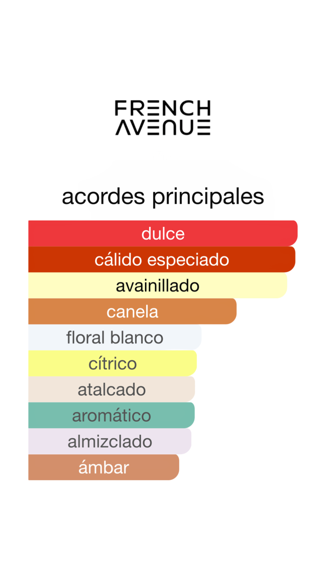 Su salida fresca y especiada despierta con energía, se transforma en un corazón floral y amaderado que refleja personalidad y estilo, y descansa en un fondo de ámbar y almizcle que deja una estela profunda, envolvente y duradera.